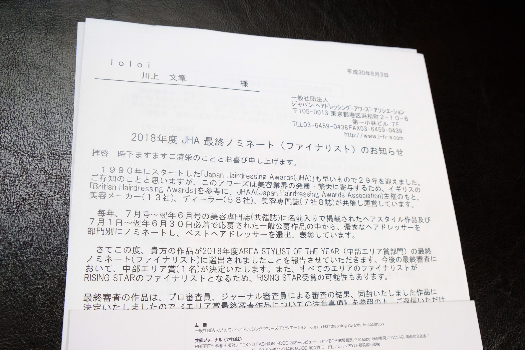 先日、JHA「Japan Hairdressing Awards」