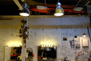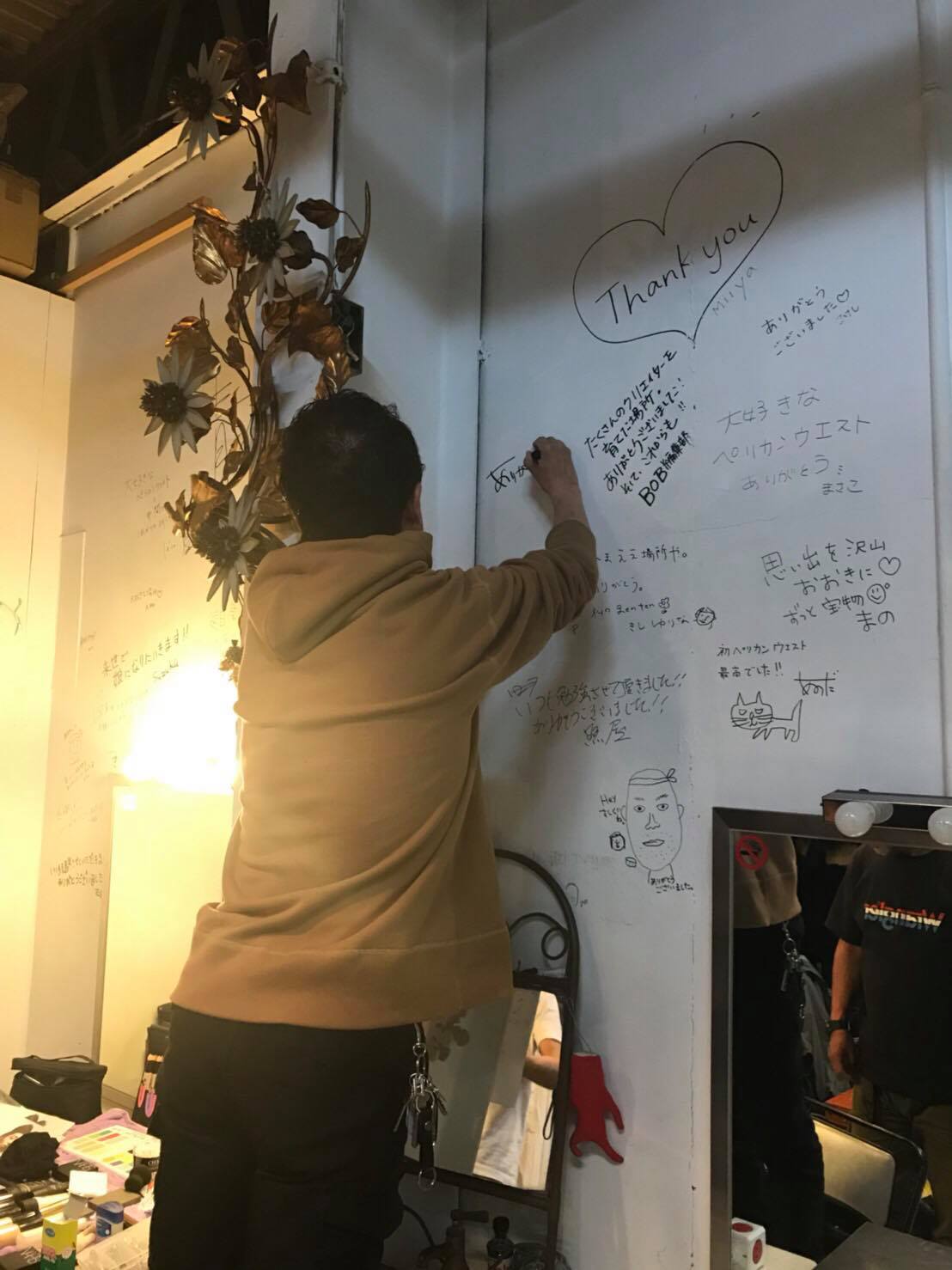 ペリカンウエストの壁に寄せ書きを書かせてもらって